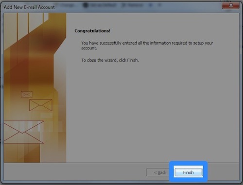 | Press the 'Finish' button You will now be able to commence using Outlook with your Adam Internet email account |