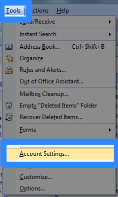 | 1. Open the 'Tools' menu 2. Select 'Account Settings...' |