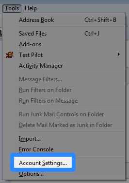 | Open the 'Mozilla Thunderbird' application 1. Open the 'Tools' menu at the top of the window |