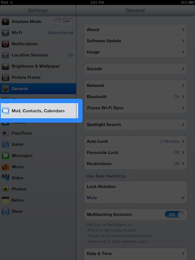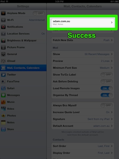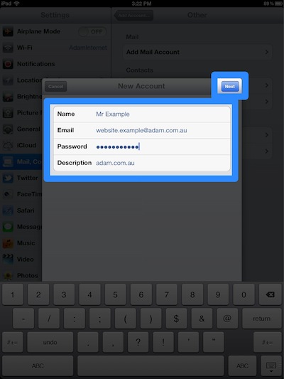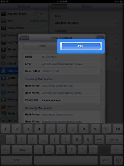 This guide will show you how to set up iPad (iOS 6) so it will send and receive mail for your Adam Internet email account. Please follow these instructions carefully. If you get stuck, go back and try again, and if you still have trouble then we're here to help you - call our Helpdesk on (08) 8423 4000.