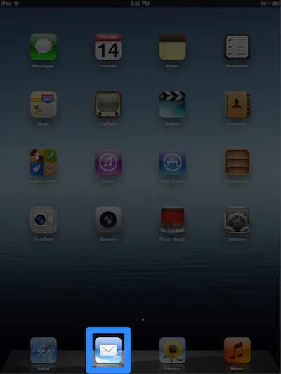 | Press the 'Home' button at the bottom of the iPad Now select the 'Mail' app and commence using your email. |