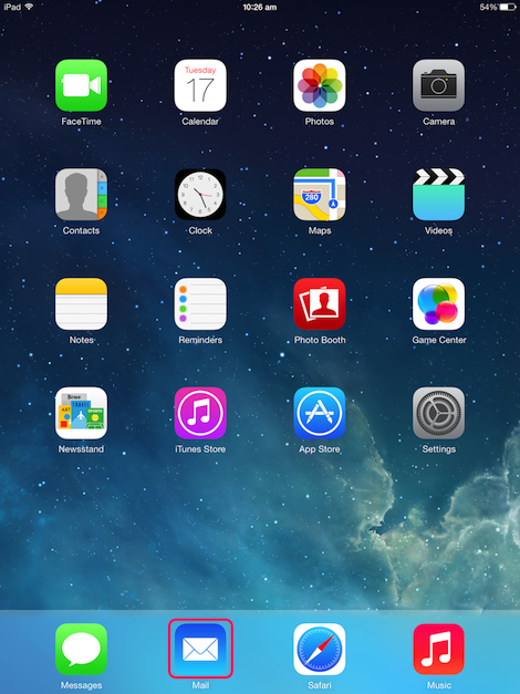 | Press the 'Home' button at the bottom of the iPad Now select the 'Mail' app and commence using your email. |