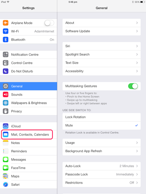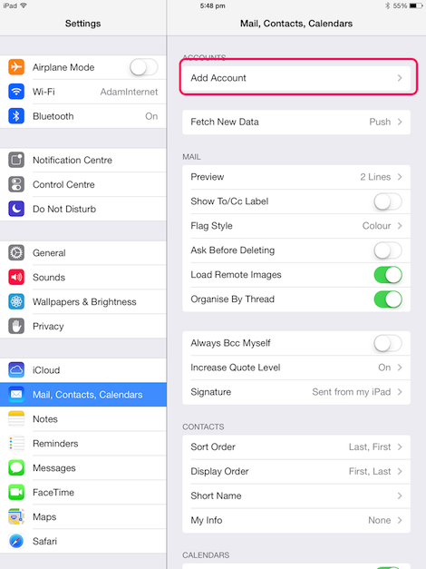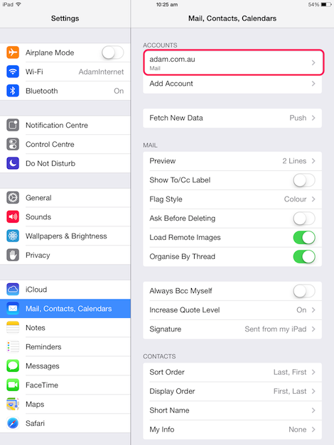 This guide will show you how to set up iPad (iOS 7) so it will send and receive mail for your Adam Internet email account. Please follow these instructions carefully. If you get stuck, go back and try again, and if you still have trouble then we're here to help you - call our Helpdesk on (08) 8423 4000.