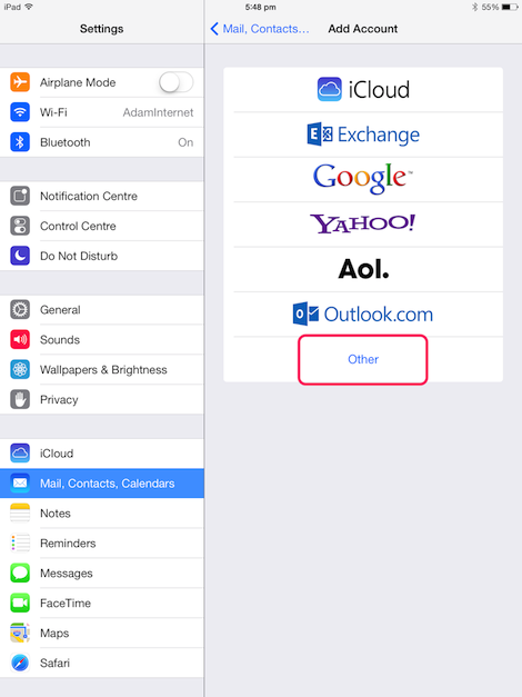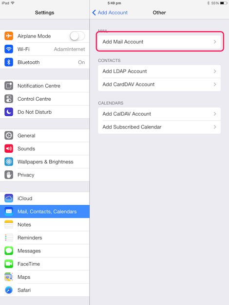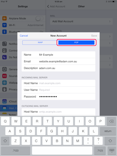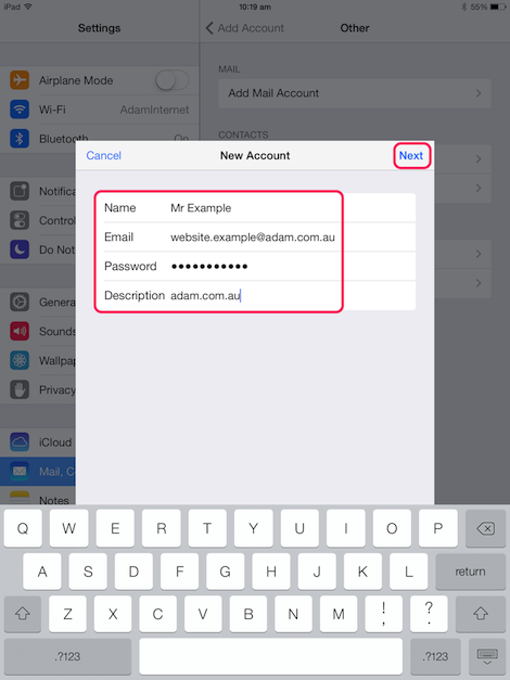 This page will guide you through setting up your Adam Internet email account for iPad (iOS 7).