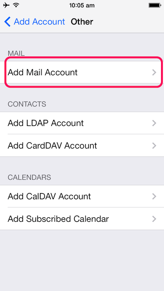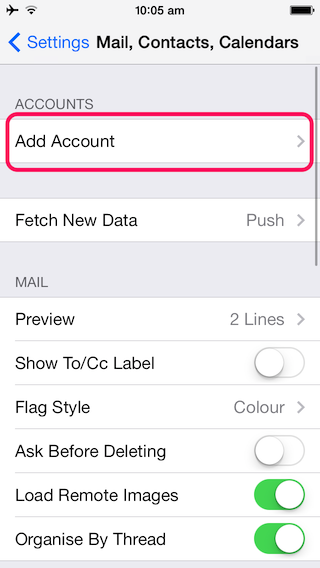 | Select 'Add Mail Account'. | ![]() |