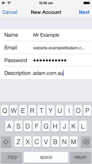 This page will guide you through setting up your Adam Internet email account for iPhone (iOS 7).